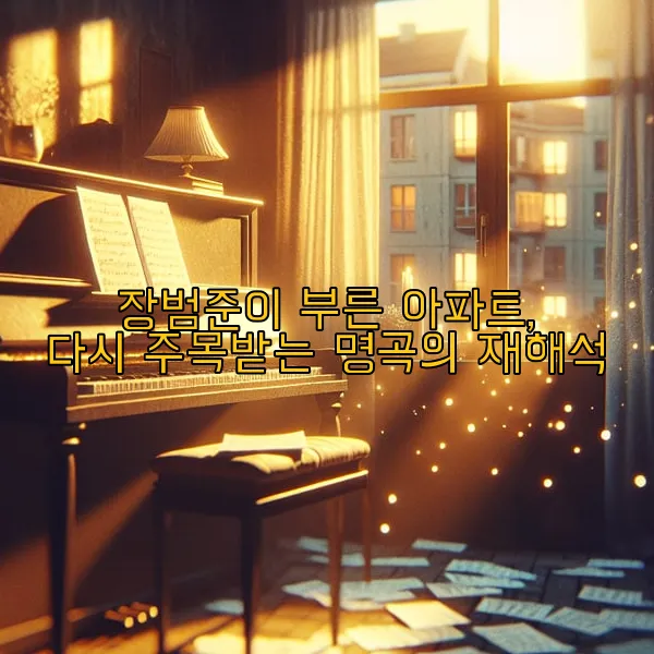 음악시간을 넘어 우리의 마음을 울리는 마법 같은 존재예요. 장범준의 '아파트' 리메이크 버전이 다시 한 번 대중의 가슴을 적시며 음악의 깊은 감성을 일깨웠어요. 오래된 명곡이 새로운 해석을 만나면서 더욱 풍부해진 감정과 멜로디로 우리에게 다가왔죠. 시대를 초월하는 음악의 힘, 그 놀라운 매력을 느껴볼까요?